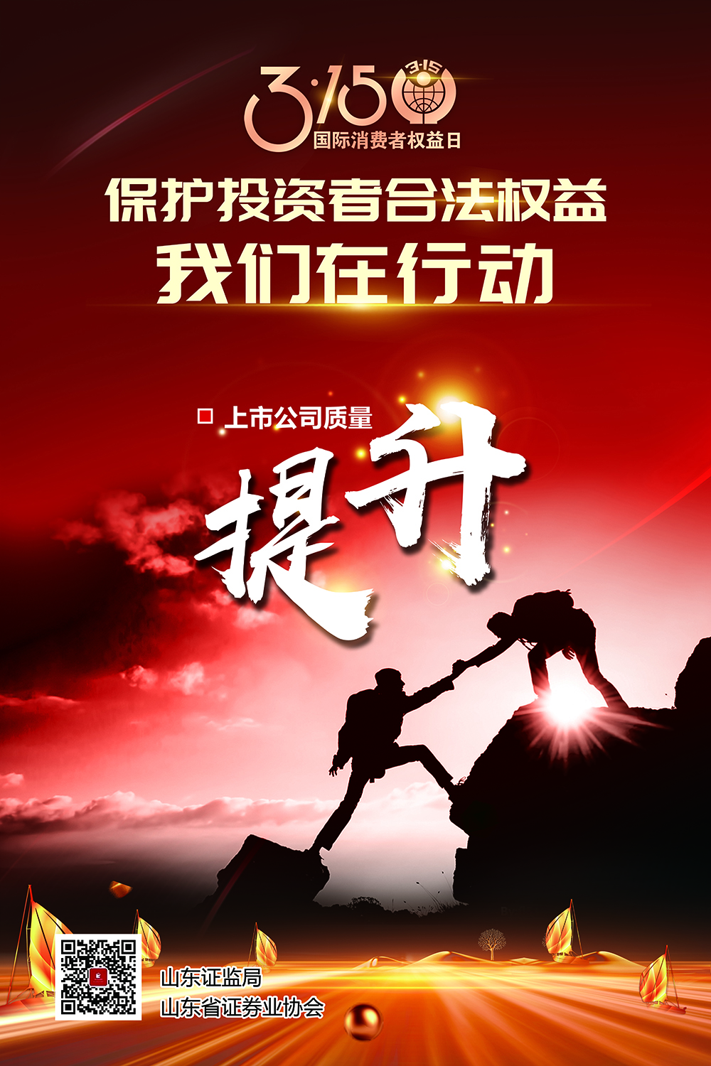 摘要:3.15國際金融消費者權益日,山東證監局溫馨提醒您: 1.誠實守信 做受尊敬的上市公司 2.理性投資 遠離非法證券期貨陷阱 3.心莫貪 擦亮眼 崩根弦 防詐騙 4.樹立理性投資理念,增強風險防范意識。 5.選擇合適理財產品,保護好自己財產 6.理財產品細甄選,合理配置降風險