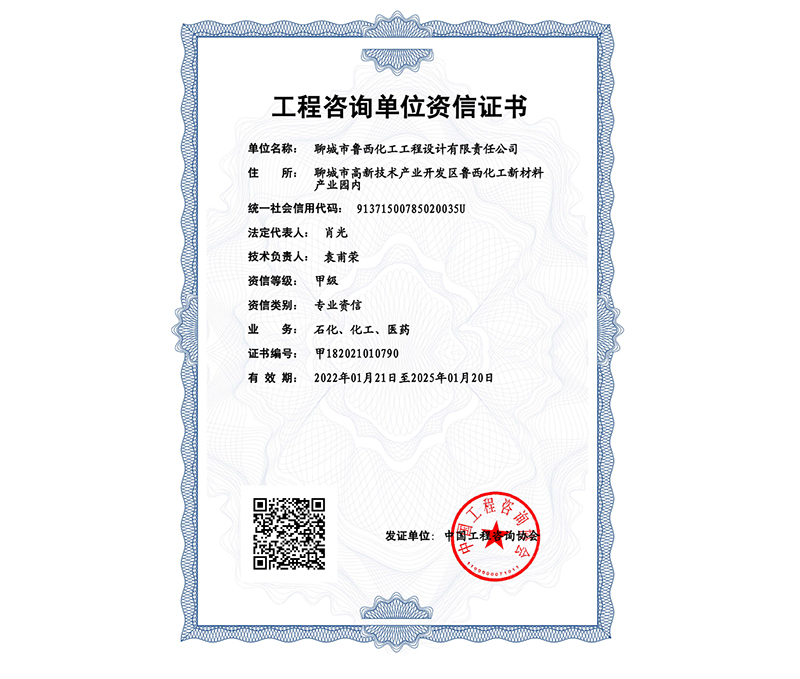 近日,中國工程咨詢協(xié)會發(fā)布《中國工程咨詢協(xié)會公告2022年第1號》,魯西集團設(shè)計院原石化、化工、醫(yī)藥專業(yè)乙級咨詢資質(zhì)順利通過甲級資信評價,成功升甲。成為聊城地區(qū)唯一甲級咨詢院。