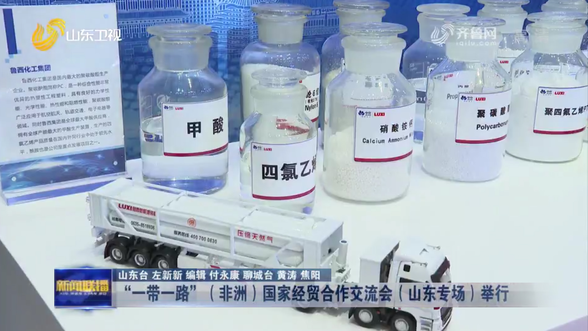 5月13日,“一帶一路”(非洲)國家經貿合作交流會山東專場在聊城市以視頻形式舉行。在外貿優品現場展覽展示區,魯西集團甲酸、丙酸、甲酸鈉、環己酮、聚碳酸酯、硫酸銨、儲氣瓶組、管束式集裝箱等產品及模型進行了展示。