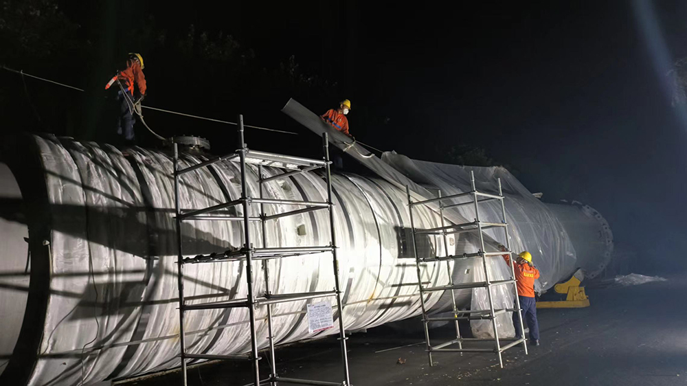 在項(xiàng)目現(xiàn)場(chǎng),機(jī)器轟鳴,焊花閃爍,設(shè)備倒運(yùn)、吊裝、安裝、保溫、探傷等所有工作齊頭并進(jìn)。制造與工程事業(yè)集團(tuán)各事業(yè)部按照統(tǒng)一部署,分別成立了黨員和先鋒突擊隊(duì),各盡其能,大顯身手。層層分解,落實(shí)責(zé)任,加緊施工,整體項(xiàng)目推進(jìn)順利,每天一小變,三天一大變,設(shè)備安裝緊張有序的開(kāi)展。
