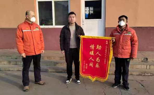 2月3日上午,市民張先生來到第五化肥廠,將一面印有“助人為樂 情暖人間”的錦旗送到五廠員工王東升的手中,并衷心感謝到:“真的非常感謝你,多虧了你,我爸才能平安回家”。