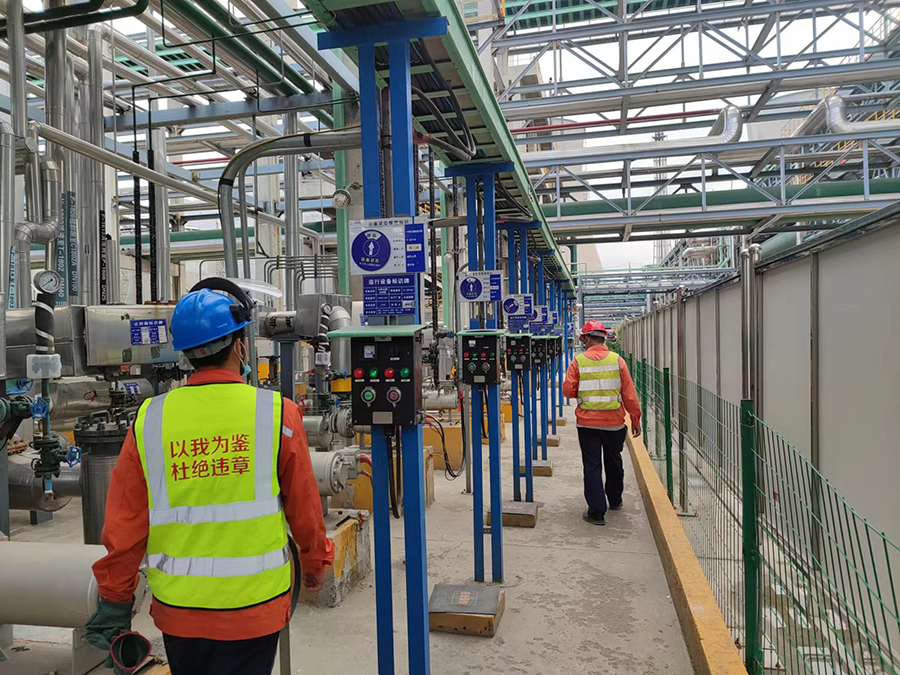 多元醇事業(yè)部進一步深入開展“黃馬甲”管理活動,充分發(fā)揮領導示范作用,實施“部長、總監(jiān)、責任單位負責人”三級人員穿甲引領示范,著“黃馬甲”深入現(xiàn)場查找不安全行為和安全隱患,傳授督察應知應會專業(yè)知識,做好安全第一吹哨人。