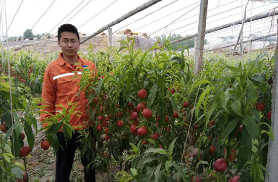 最美人間四月天,果農(nóng)望桃笑開顏。果樹種植大棚里,隨處可見果農(nóng)忙碌的身影。放眼望去,棚外風(fēng)和日麗,棚內(nèi)欣欣向榮,好一派愜意的景象。