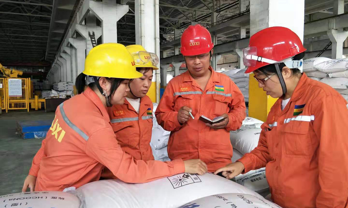 有機胺事業部對產品包裝的外觀質量進行檢查